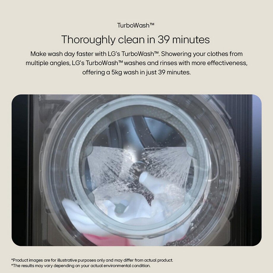 - Blitz through a 5kg load in just 39 minutes with TurboWash™ tech